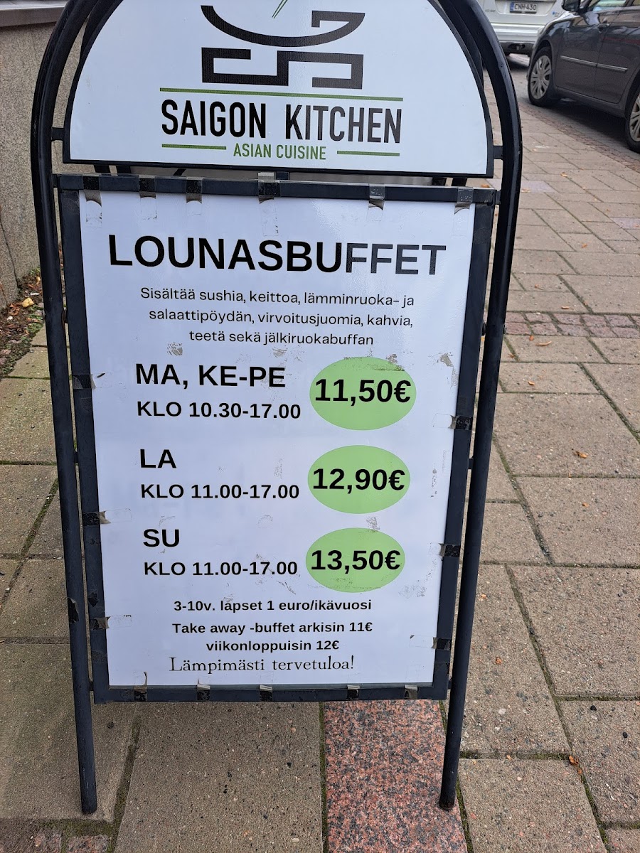 Sai Gon Kitchen in Varkaus delivers a diverse and flavorful menu that skillfully balances traditional Vietnamese fare with a touch of international influence. The Sushit stand out for their freshness and delicate presentation, offering a satisfying option for sushi lovers. The Spring Rolls are another highlight, crisp and well-seasoned, making them a perfect starter. For those seeking a heartier experience, the Lämmin Buffet provides a warm and varied selection that caters to a range of tastes, while the Päivän Buffet Sushilla combines the best of the daily offerings with sushi, giving diners both variety and quality in one meal. Overall, the menu showcases careful attention to flavor, presentation, and versatility, making Sai Gon Kitchen a reliable choice for anyone in Varkaus looking for a satisfying dining experience.